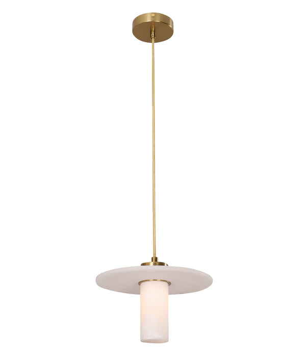 Luxury Interior Cylinder Round Hat Marble Shade Brass Highlight Pendant Light